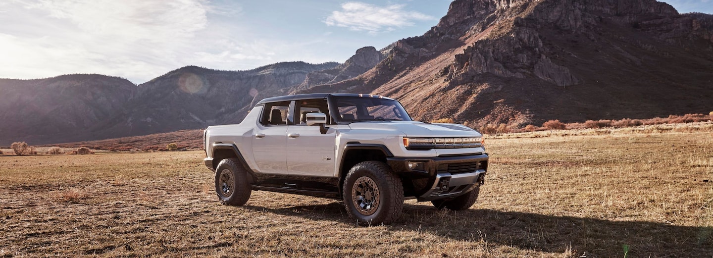 The new all-electric GMC Hummer EV is here to reshape the way you look at a super truck. Its all-electric powertrain can generate up to 1,000 horsepower and over 11,500 pound-feet of available torque. This is made possible by new inventive GM Ultium batteries that deliver their power to two electric motors at the front and back of the vehicle.