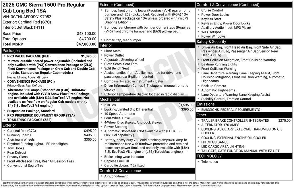 Recent Arrival!2025 GMC Sierra 1500 ProTax, title, doc fee ($237), optional accessories, extra. We invite you in to take a test drive! Stoops Buick-GMC in Plainfield, Indiana, family owned and proudly serving our community since 1990. We have an A+ rating with the Better Business Bureau and have been a CarFax Top Rated Dealer 5 years in a row! Stoops Buick-GMC: conveniently located only 5 minutes west of the airport and mile and a half north of I-70 on SR 267 in Plainfield. Proudly serving Plainfield and the surrounding communities of Greenwood, Indianapolis, Mooresville, Avon, Brownsburg and more. Call us direct at 317-839-7771! Thank you for the opportunity to earn your business!*Includes all incentives. We strive to ensure the accuracy of the information on this site. However, mistakes can happen. To verify any information listed on this site please call us at 317-839-7771 or visit us in store. Price includes discounts and rebates available to the general public, and dealer installed items. You may qualify for additional rebates. , Doc Fee Taxes and license are extra. Use of factory sponsored finance or lease programs may affect final vehicle price, and are subject to credit approval. Subject to prior sale.$1500 - Bonus Cash. Exp. 11/03/2025 $2750 - Purchase Allowance. Exp. 11/03/2025 $3000 - Trade Assistance. Exp. 11/03/2025
