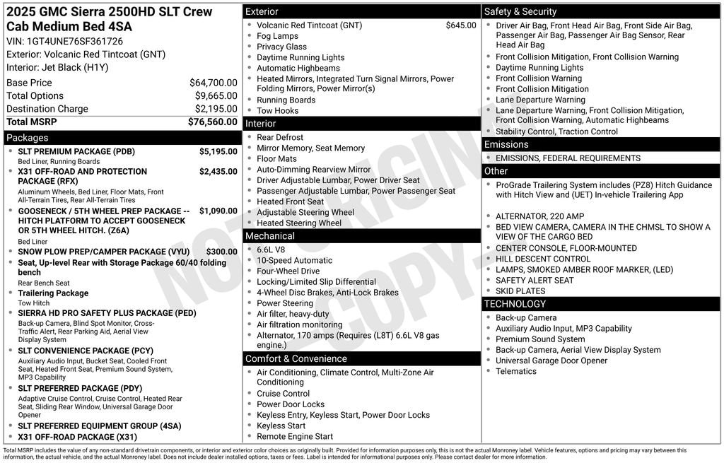 Elevate your driving experience with the Sierra 2500HD SLT's standout features, including a Bose Premium 7-Speaker Sound System, Memory Seat, Remote Vehicle Starter System, Universal Home Remote, Off-Road Suspension, Hill Descent Control, Adaptive Cruise Control, and much more.