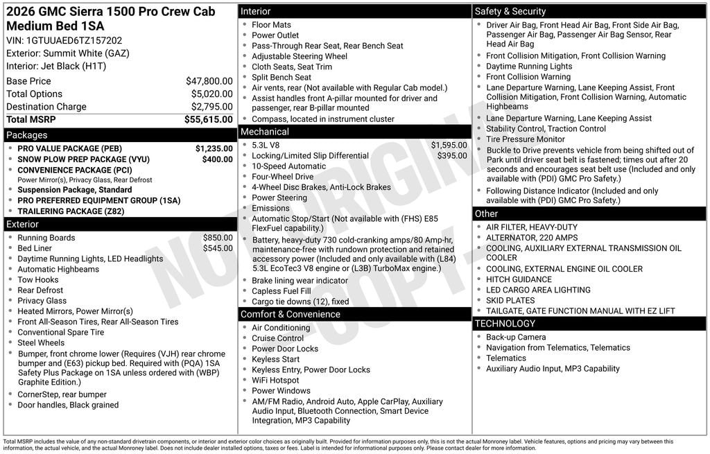 3.23 Rear Axle Ratio, Convenience Package, Deep-Tinted Glass, Electric Rear-Window Defogger, Forward Collision Alert, Front Pedestrian Braking, HD Rear Vision Camera, Heated Power-Adjustable Outside Mirrors, Heavy-Duty Air Filter, Hitch Guidance, LED Cargo Area Lighting, Pro Value Package, Snow Plow Prep Package, Trailering Package, Wheels: 17 x 8 Silver Painted Steel, Wi-Fi Hotspot Capable, Wireless Apple CarPlay/Wireless Android Auto.