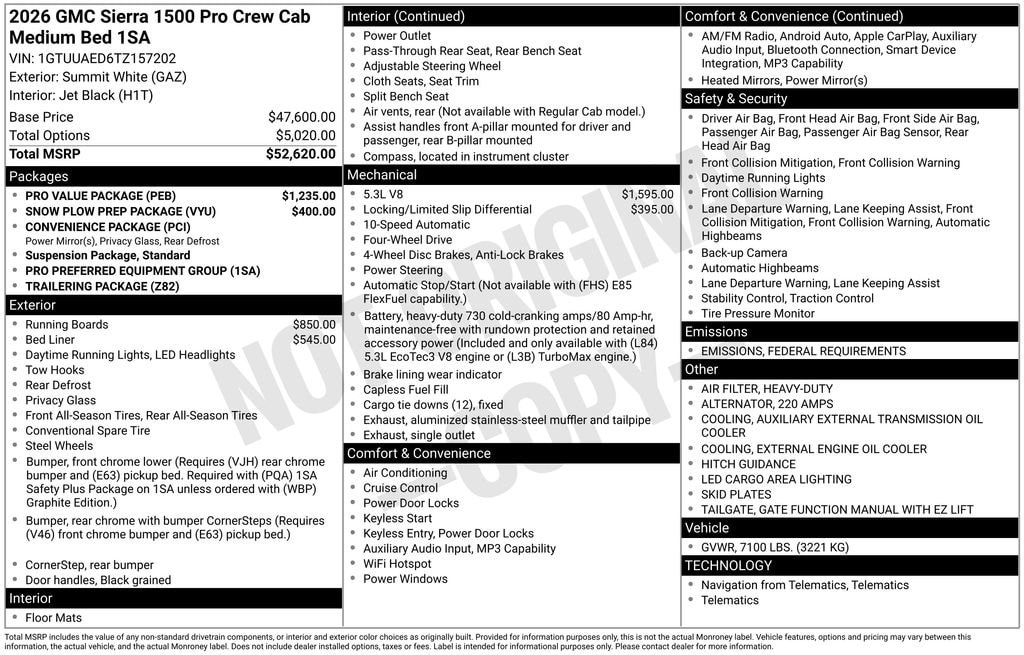 - Warranty: <<< Preliminary 2026 Warranty >>>