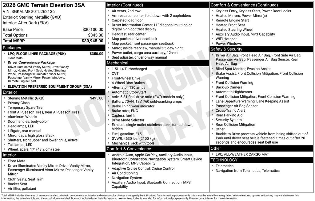 - Warranty: <<< Preliminary 2026 Warranty >>>