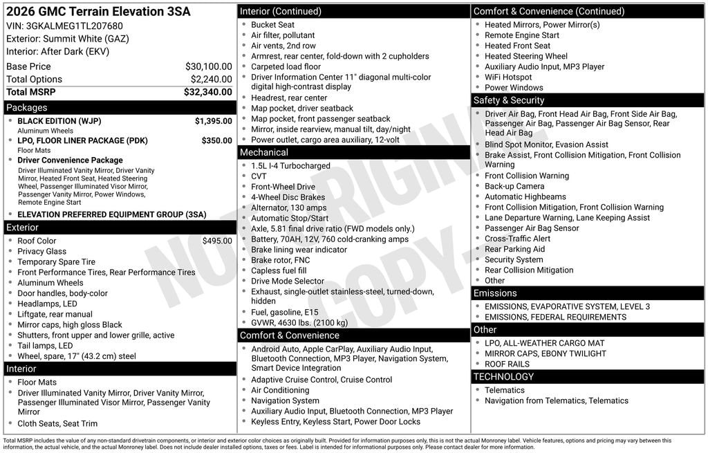 - Warranty: <<< Preliminary 2026 Warranty >>>