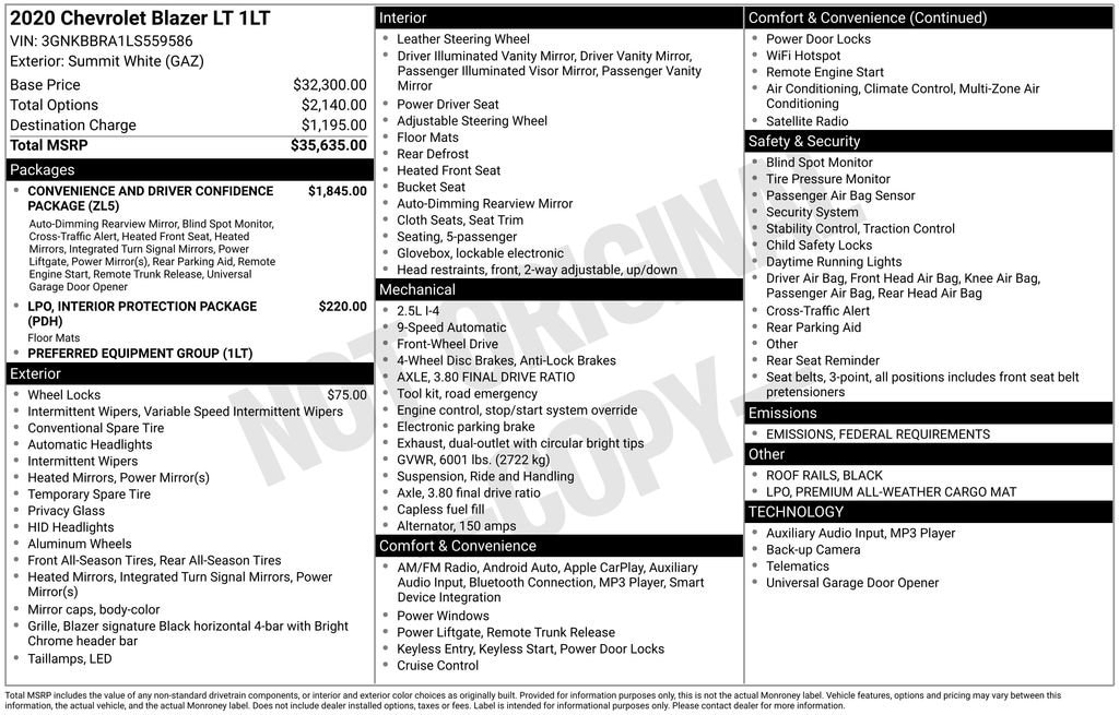 2020 Chevrolet Blazer LT Summit White FWD 2.5L 4-Cylinder