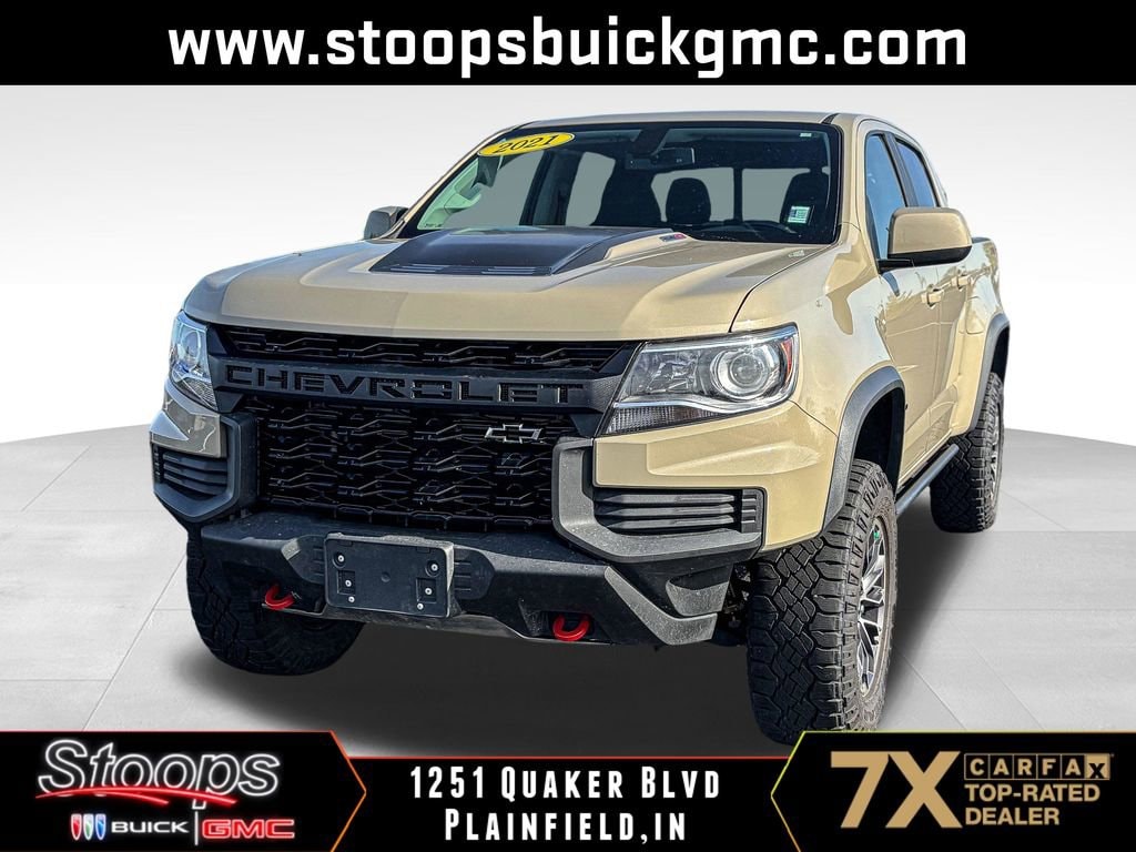 2021 Chevrolet Colorado ZR2 Sand Dune Metallic 4WD 2.8L Duramax TurbodieselPriced below KBB Fair Purchase Price! Odometer is 17580 miles below market average!CARFAX One-Owner. Clean CARFAX.*** Local Trade ***, *** Apple CarPlay/Android Auto ***, * BOSE PREMIUM SOUND SYSTEM *, * REMOTE START *, * HEATED FRONT SEATS *, * HEATED STEERING WHEEL *, * REAR VISION CAMERA *.Tax, title, doc fee ($251.05), optional accessories, extra. We invite you in to take a test drive! Stoops Buick-GMC in Plainfield, Indiana, family owned and proudly serving our community since 1990. We have an A+ rating with the Better Business Bureau and have been a CarFax Top Rated Dealer 5 years in a row! Stoops Buick-GMC: conveniently located only 5 minutes west of the airport and mile and a half north of I-70 on SR 267 in Plainfield. Proudly serving Plainfield and the surrounding communities of Greenwood, Indianapolis, Mooresville, Avon, Brownsburg and more. Call us direct at 317-839-7771! Thank you for the opportunity to earn your business!We strive to ensure the accuracy of the information on this site. However, mistakes can happen. To verify any information listed on this site please call us at 317-839-7771 or visit us in store.