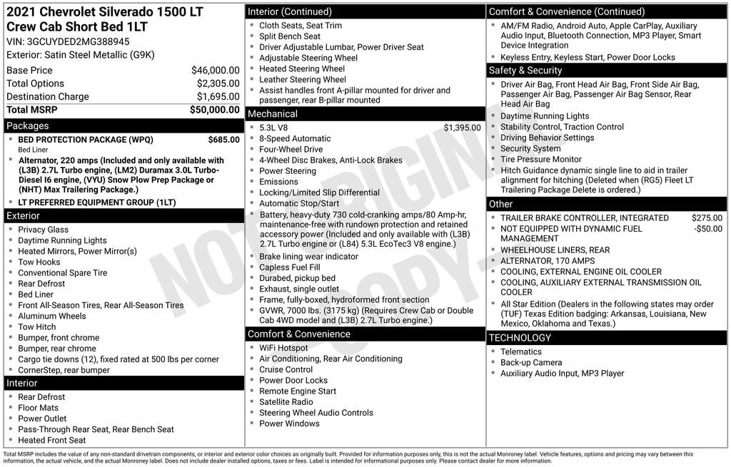 2021 Chevrolet Silverado 1500 LT LT1 Satin Steel Metallic 4WD EcoTec3 5.3L V8