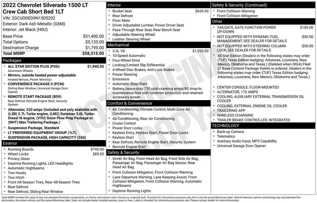 2022 Chevrolet Silverado 1500 LT LT1 Dark Ash Metallic 4WD EcoTec3 5.3L V8