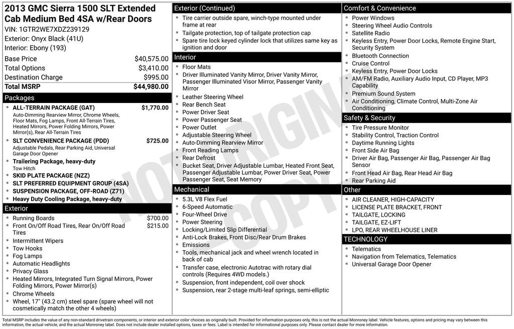 Recent Arrival!2013 GMC Sierra 1500 SLT Onyx Black 4WD Vortec 5.3L V8 SFI VVT Flex FuelAwards:* JD Power Initial Quality StudyTax, title, doc fee ($237), optional accessories, extra. We invite you in to take a test drive! Stoops Buick-GMC in Plainfield, Indiana, family owned and proudly serving our community since 1990. We have an A+ rating with the Better Business Bureau and have been a CarFax Top Rated Dealer 5 years in a row! Stoops Buick-GMC: conveniently located only 5 minutes west of the airport and mile and a half north of I-70 on SR 267 in Plainfield. Proudly serving Plainfield and the surrounding communities of Greenwood, Indianapolis, Mooresville, Avon, Brownsburg and more. Call us direct at 317-839-7771! Thank you for the opportunity to earn your business!We strive to ensure the accuracy of the information on this site. However, mistakes can happen. To verify any information listed on this site please call us at 317-839-7771 or visit us in store.