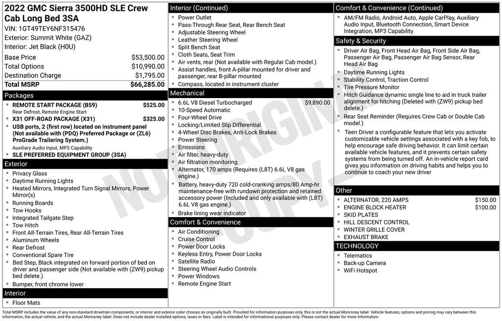 2022 GMC Sierra 3500HD SLE Summit White 4WD Duramax 6.6L V8 Turbodiesel