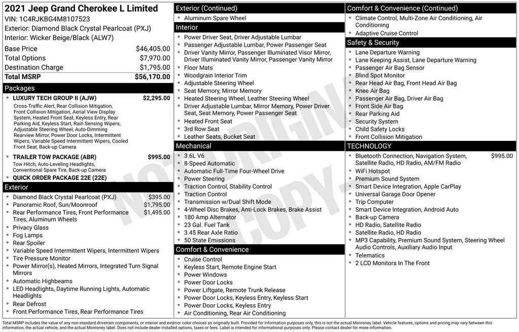 2021 Jeep Grand Cherokee L Limited Diamond Black Crystal Pearlcoat 4WD 3.6L V6 24V VVT