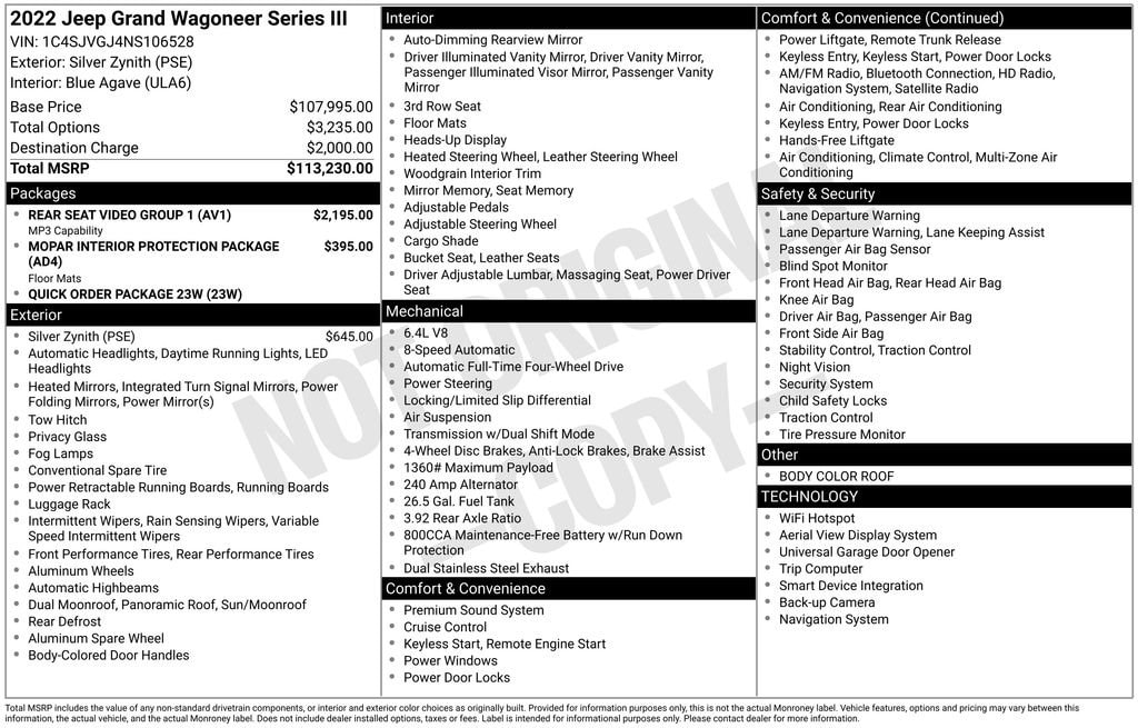 2022 Jeep Grand Wagoneer Series III Silver Zynith 4WD 6.4L V8